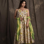 Pure Cotton V Neck 3/4 Sleeve Printed Kurta Set With Dupatta