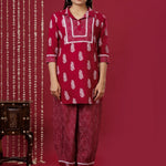 Viscose Rayon Collared Neck 3/4 Sleeve Printed Kurta Set
