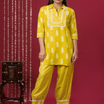 Viscose Rayon Collared Neck 3/4 Sleeve Printed Kurta Set
