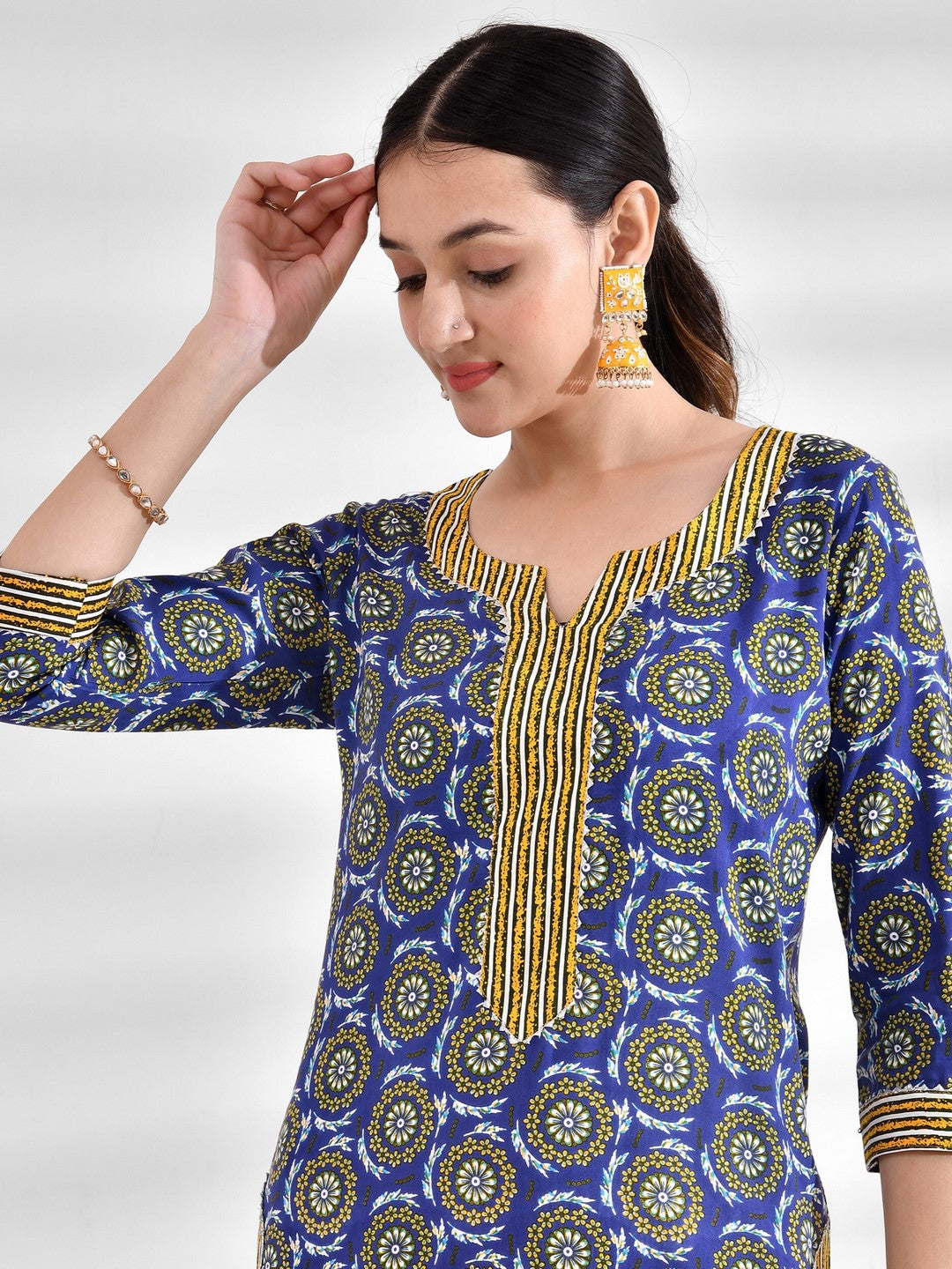 Viscose Rayon Abstract Round Neck Kurta Set