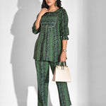 Printed Viscose Rayon 3/4 Sleeve Kurta And Trouser Set