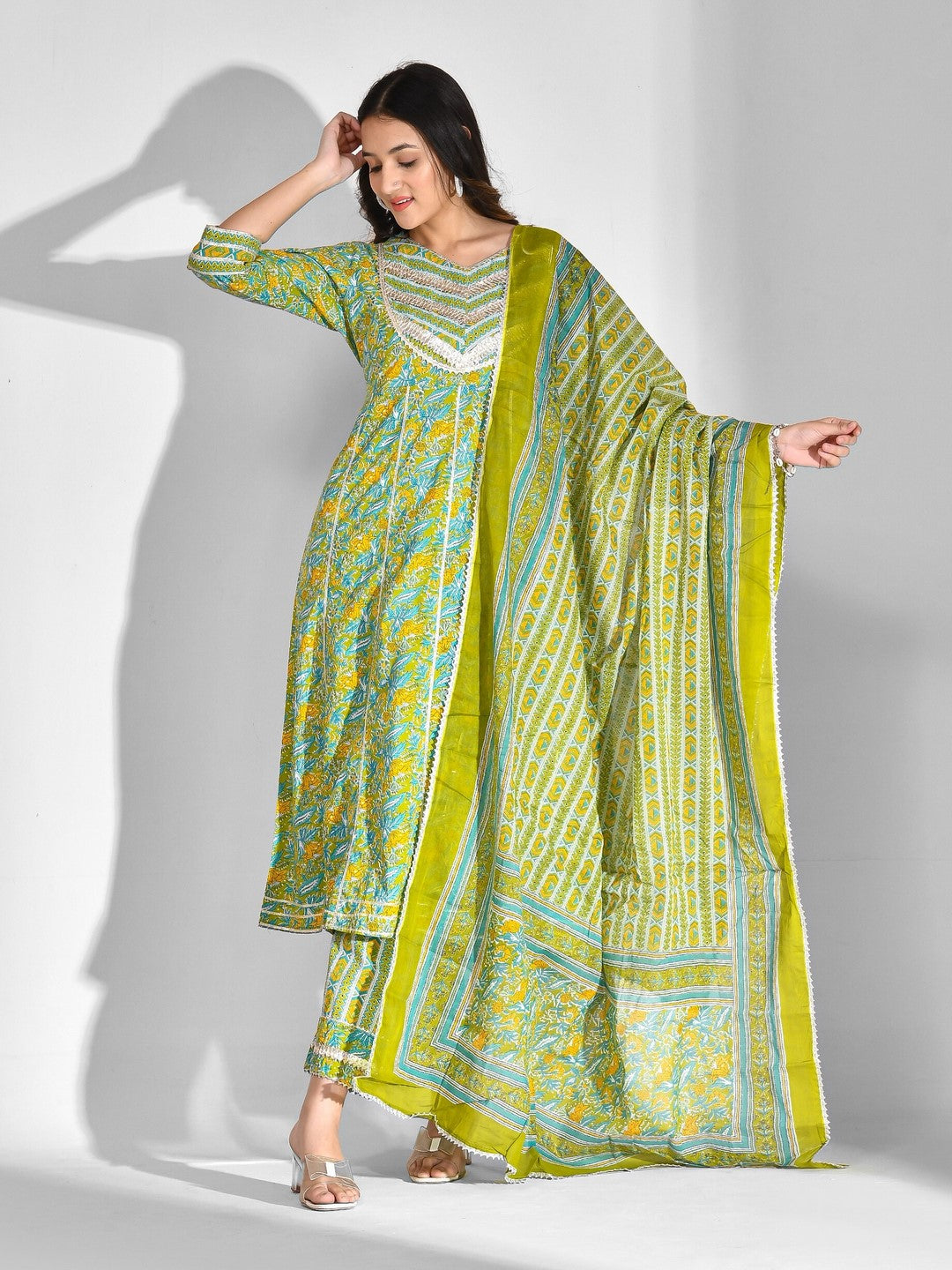 Printed Pure Cotton 3/4 Sleeve Kurta And Palazzo Set With Dupatta
