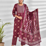 Printed Pure Cotton 3/4 Sleeve Kurta And Trouser Set With Dupatta
