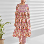 Printed Pure Cotton 3/4 Sleeve Kurta And Trouser Set