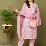 Printed Viscose Rayon 3/4 Sleeve Kurta And Trouser Set With Dupatta