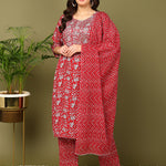 Printed Viscose Rayon 3/4 Sleeve Kurta And Trouser Set With Dupatta