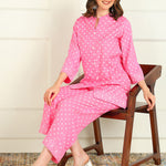 Printed Viscose Rayon 3/4 Sleeve Kurti And Trouser Set