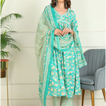 Printed Pure Cotton 3/4 Sleeve Kurta And Trouser Set With Dupatta