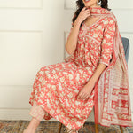 Printed Pure Cotton 3/4 Sleeve Kurta And Trouser Set With Dupatta