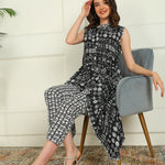 Printed Viscose Rayon Sleeveless Kurta And Trouser Set