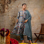Embroidered Floral Round Neck Muslin Kurta & Pant With Dupatta