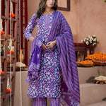 Purple Floral Cotton Kurta Set With Printed Dupatta.