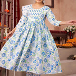 Blue & White Floral Printed Anarkali Kurta Set With Dupatta