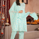 Mint Green Floral Printed Cotton Kurta Set With Dupatta