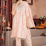 Orange Floral Printed Cotton Kurta Set With Dupatta