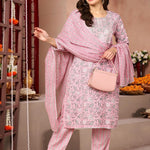 Pink Floral Printed Cotton Kurta Set With Dupatta