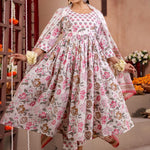 White & Pink Floral Anarkali Kurta Set With Dupatta