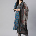 Straight Style Cotton Fabric Navy Blue Color Kurta With Bottom With Dupatta