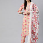 Straight Style Cotton Fabric Peach Color Kurta With Bottom And Dupatta