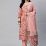 Straight Style Cotton Fabric Orange Color Kurta With Bottom And Dupatta