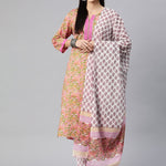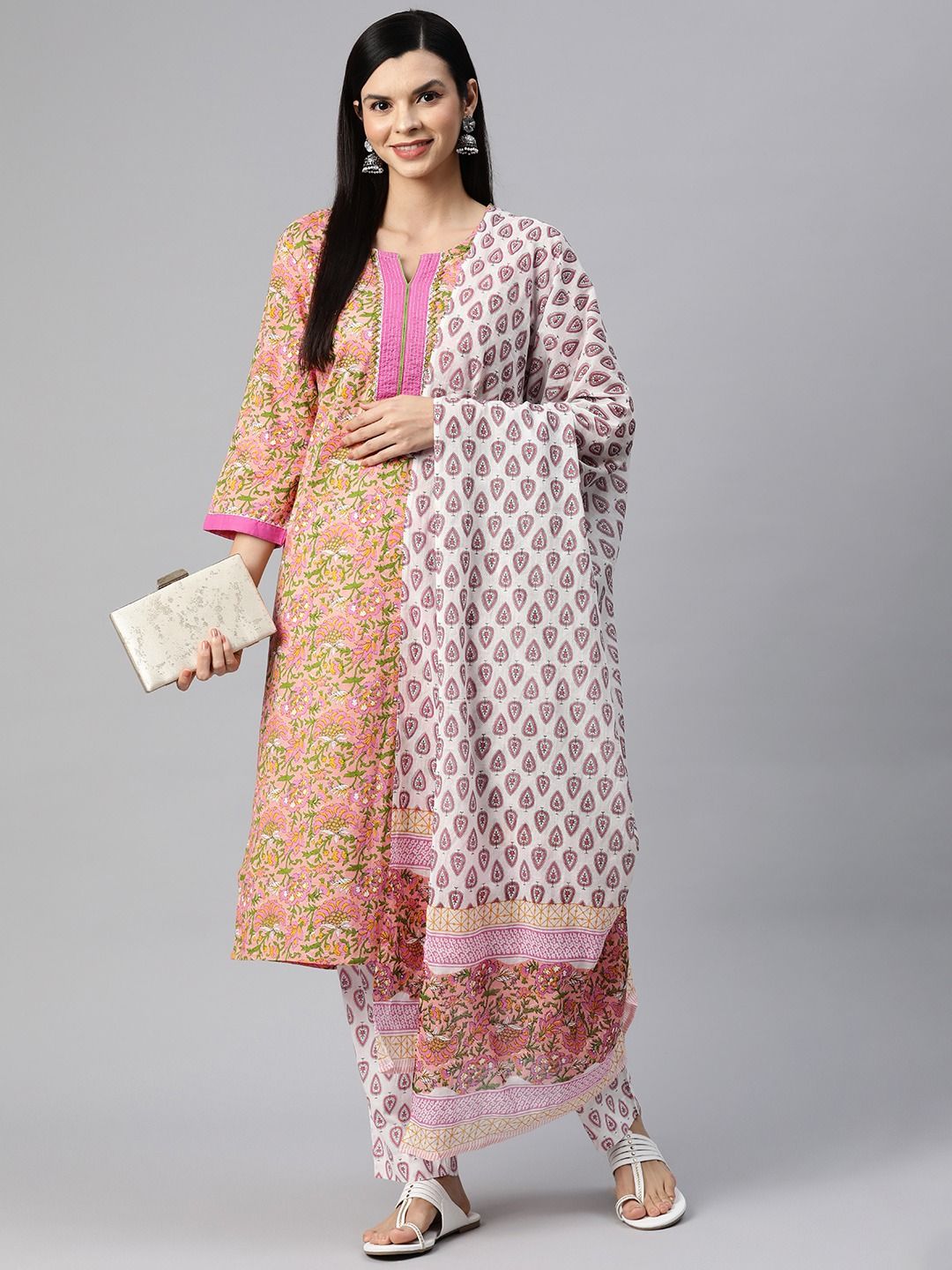 Straight Style Cotton Fabric Orange Color Kurta With Bottom With Dupatta