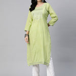 Straight Style Cotton Blend Fabric Green Color Kurta With Bottom