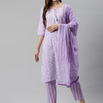 Straight Style Cotton Fabric Purple Color Kurta And Bottom With Dupatta