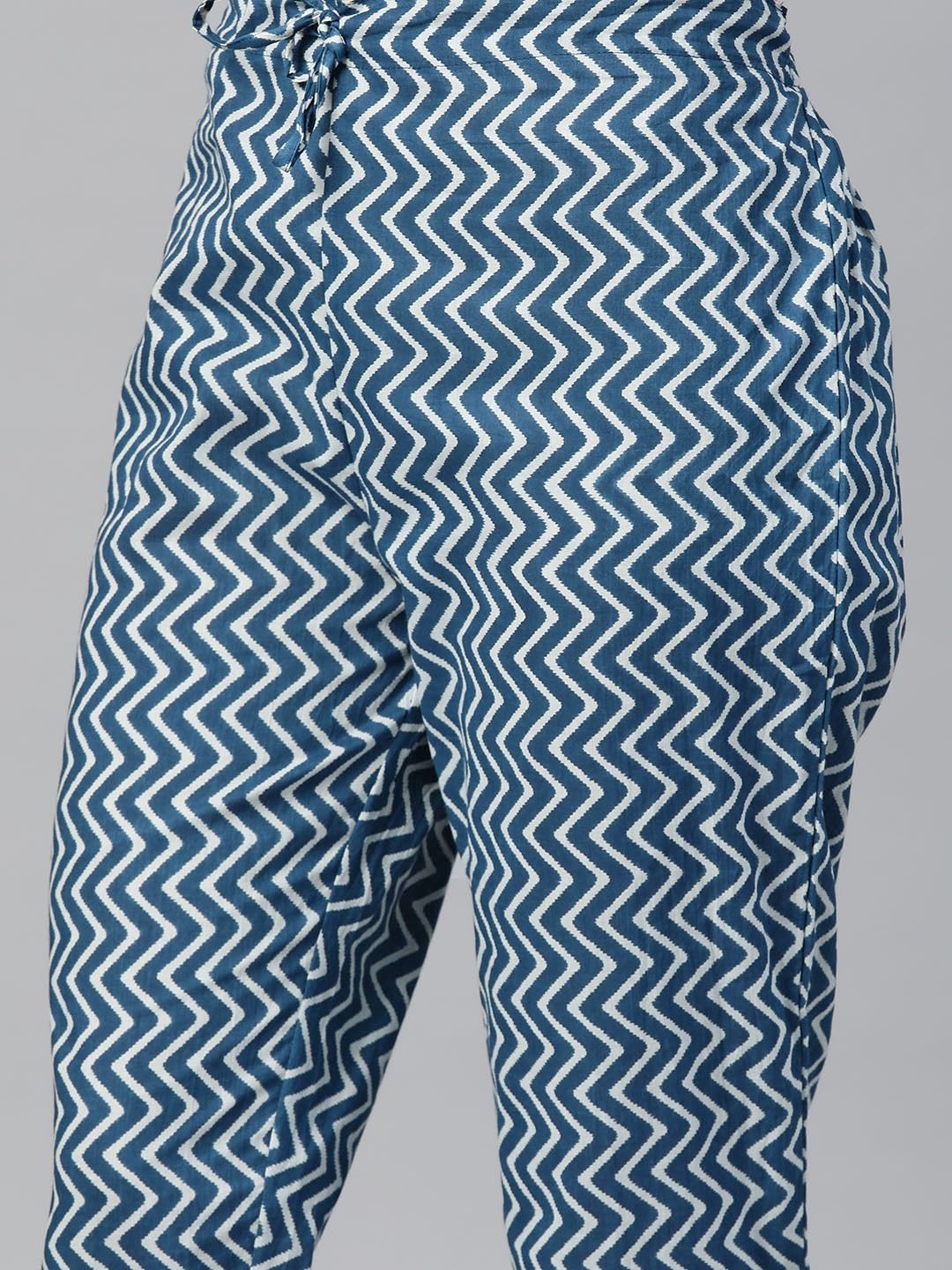 Description - Straight Style Cotton Fabric Navy Blue Color Printed Kurti With Bottom & Dupatta