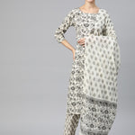 Straight Style Cotton Fabric Black Color Kurta With Bottom & Dupatta