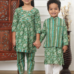 Frock Style Cotton Fabric Green Color Kurti And Palazzo