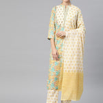 Straight Style Cotton Fabric Yellow Color Kurta And Palazzo With Dupatta