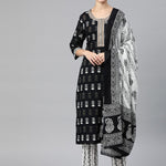 Straight Style Cotton Fabric Black & White Color Kurta And Palazzo With Dupatta