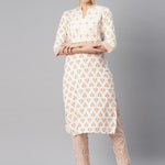 Description - Straight Style Cotton Fabric Off White Color Kurti With Thread Work With Bottom
