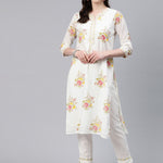 Straight Style Cotton Fabric White & Pink Color Kurti And Bottom