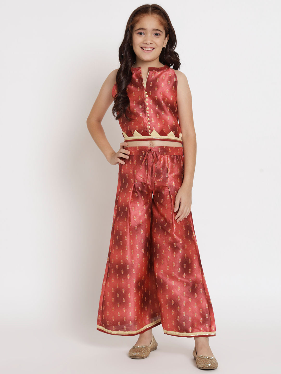 Straight Style Chanderi Fabric Rust Color Top And Palazzo
