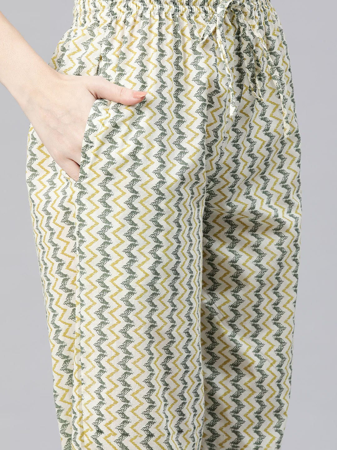 Frock Style Cotton Fabric Green Color Printed Kurti And Bottom With Dupatta