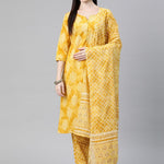 Straight Style Cotton Fabric Yellow Color Kurti And Bottom With Dupatta