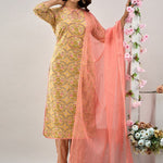 Straight Style Cotton Fabric Yellow Color Kurti And Bottom With Dupatta