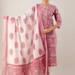 Straight Style Cotton Fabric Pink Color Kurti And Bottom With Dupatta