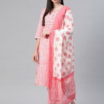 Straight Style Cotton Fabric Pink Color Kurti And Bottom With Dupatta