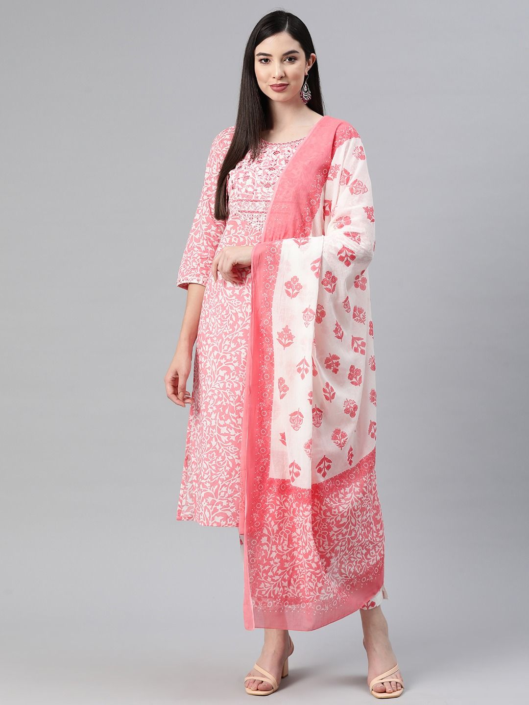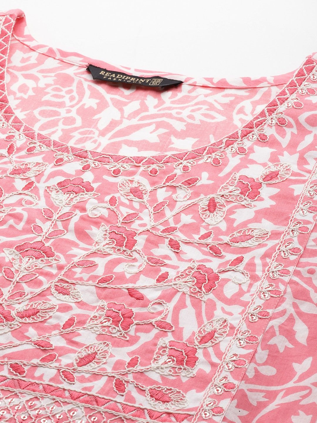 Description - Straight Style Cotton Fabric Pink Color Printed Kurti With Thread And Sequence Work With Bottom With Dupatta