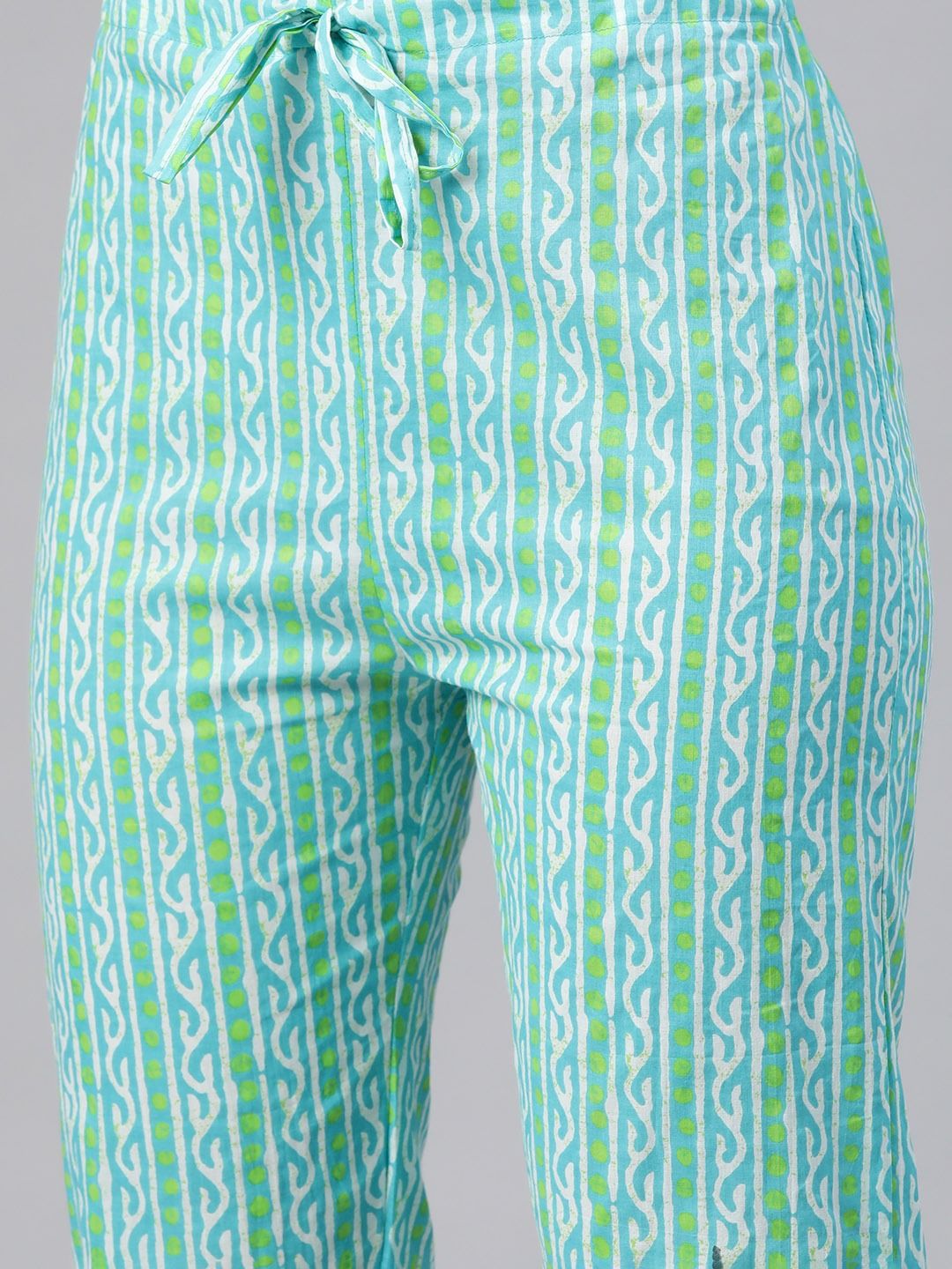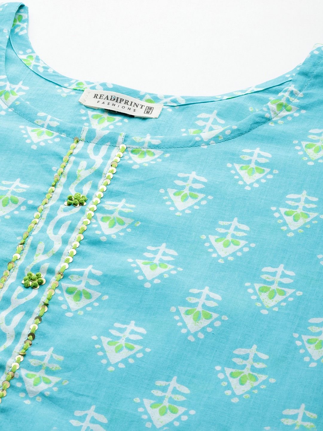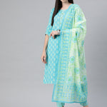 Straight Style Cotton Fabric Blue Color Kurti And Bottom With Dupatta
