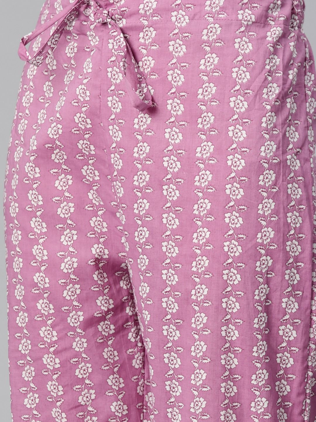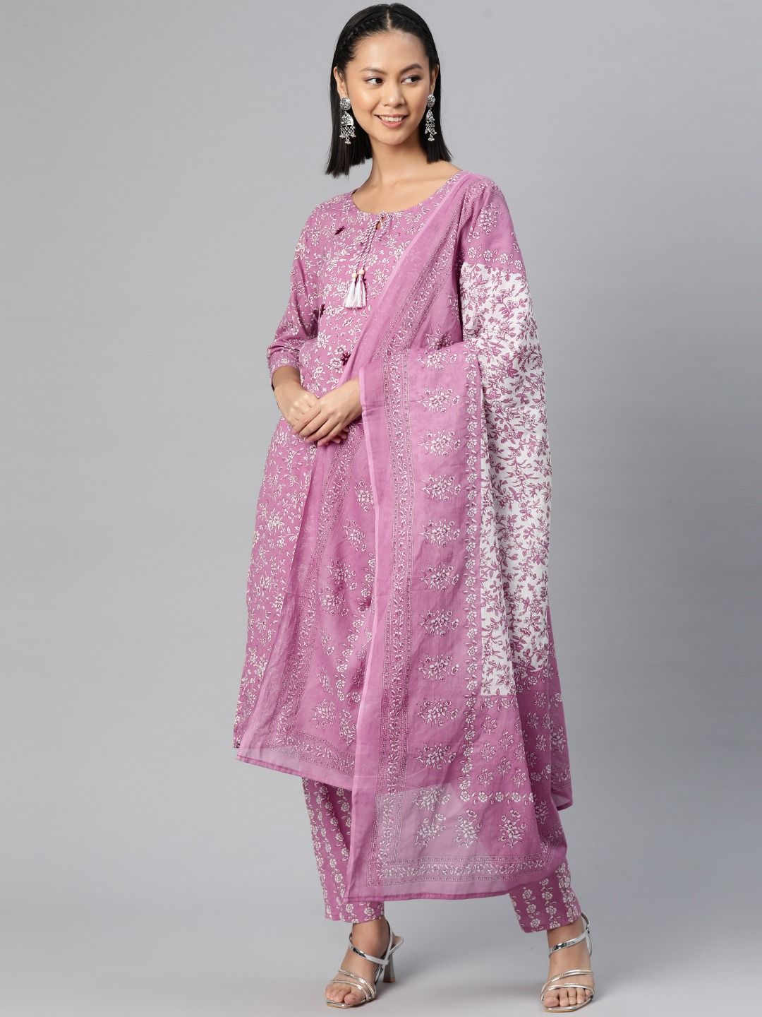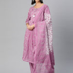 Straight Style Cotton Fabric Purple Color Kurti And Bottom With Dupatta