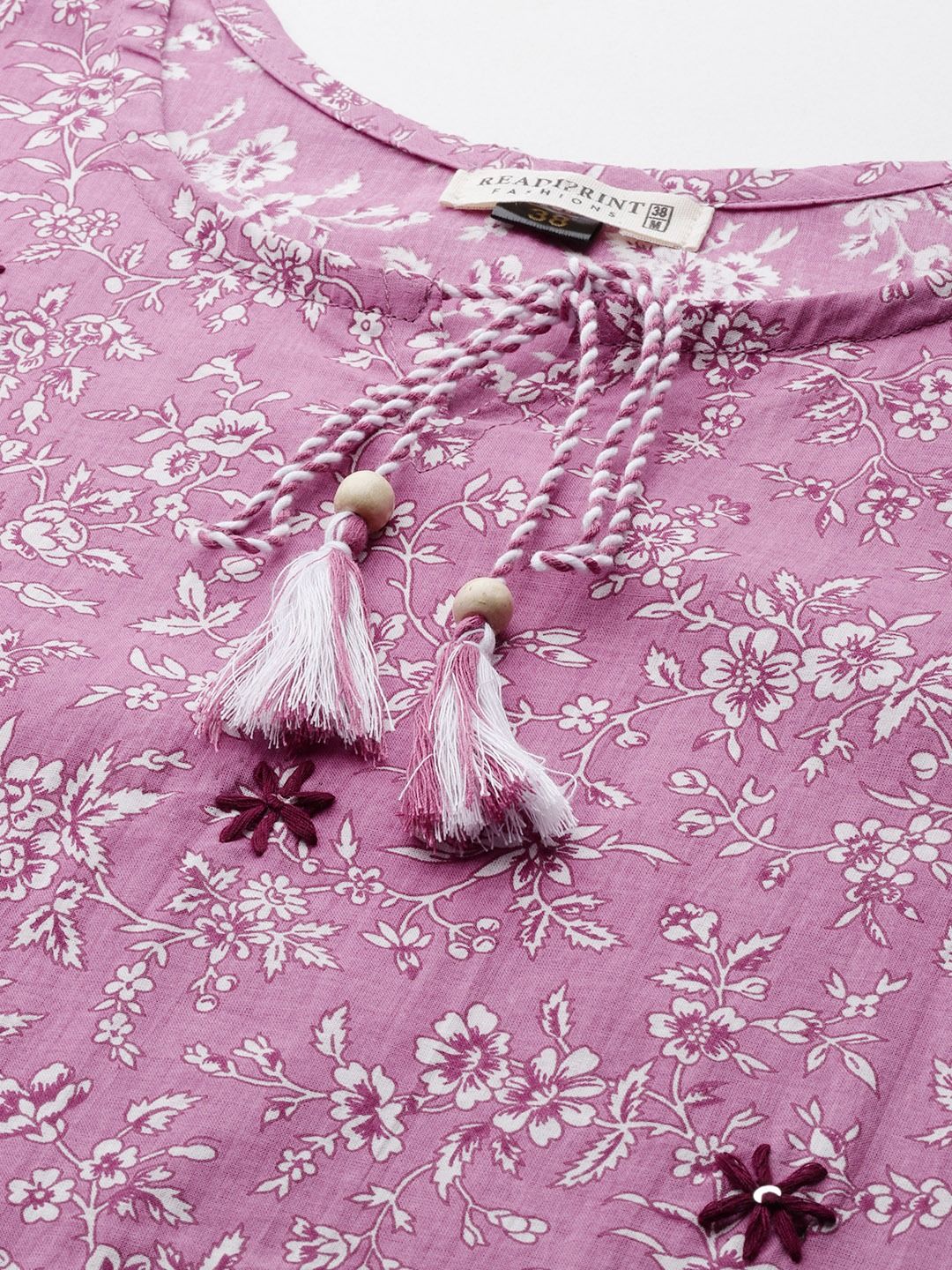 Description - Straight Style Cotton Fabric Printed Purple Colour Kurta With Thread & Sequence Work With Bottom & Dupatta
