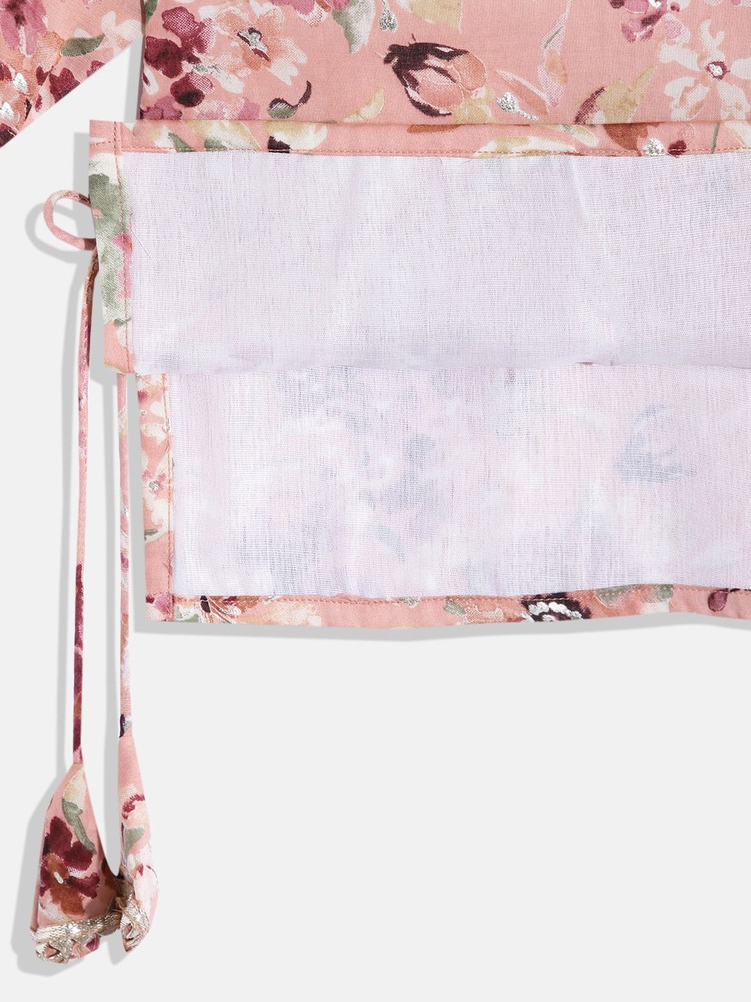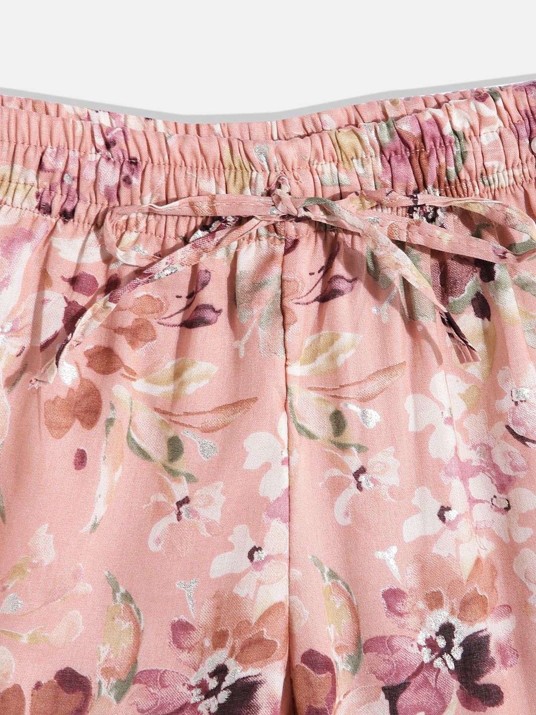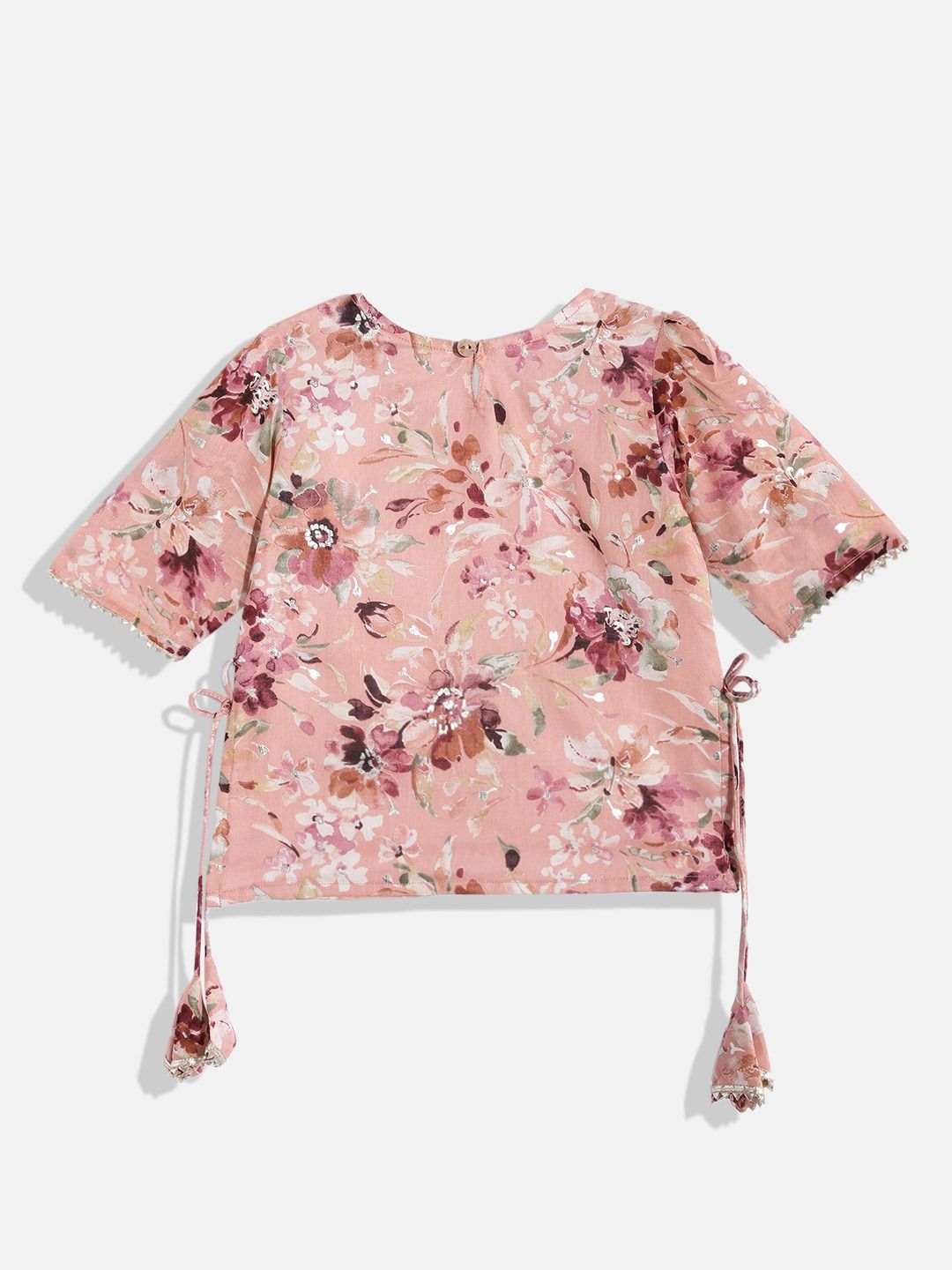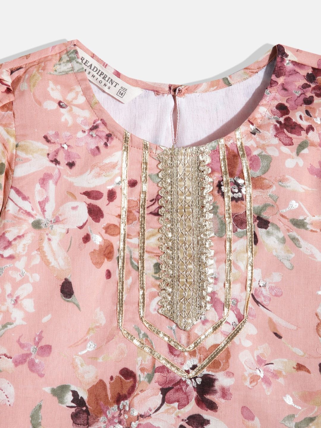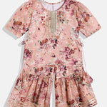 Description - Straight Style Cotton Fabric Peach Color Floral Printed Kurti And Sharara Set With Gotta Lace