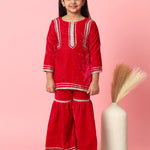 Description - Straight Style Velvet Fabric Magenta Color Kurta And Sharara With Gotta Lace Work