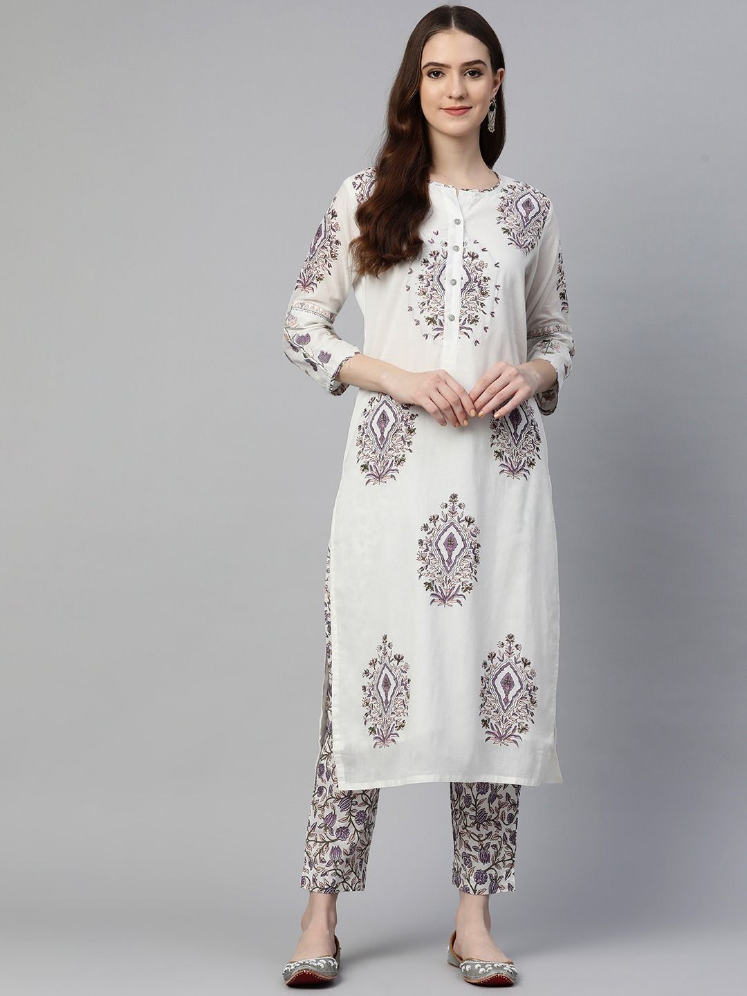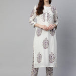 Straight Style Cotton Fabric White Color Kurta With Bottom