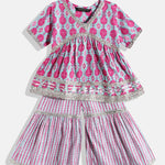 Frock Style Sea Green And Pink Color Printed Kurti With Sharara