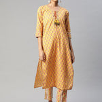 Straight Style Cotton Fabric Yellow Color Kurta With Bottom