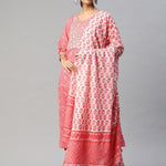 Straight Style Cotton Fabric Pink Color Kurta With Bottom And Dupatta